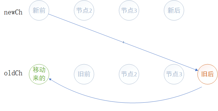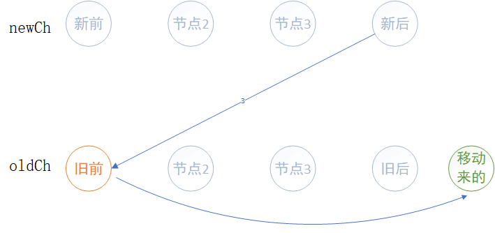 // 如果oldEndVnode和newStartVnode是同一个节点,,然后把oldEndVnode移动到oldCh所有未处理的节点之前