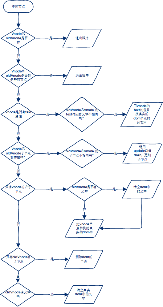 if (sameVnode(vnodeToMove, newStartVnode)) { //如果是同一个节点就进行更新节点